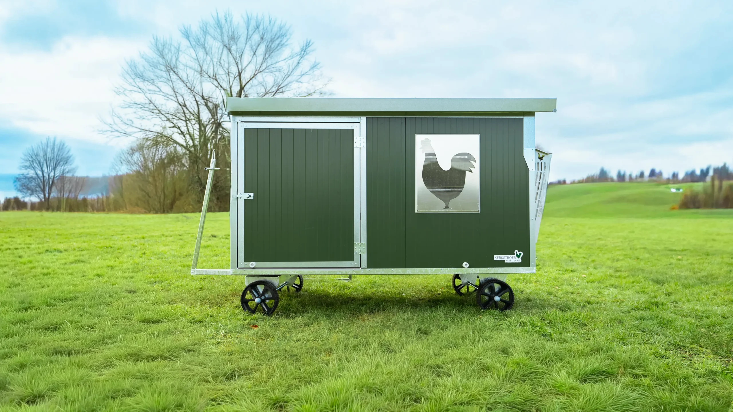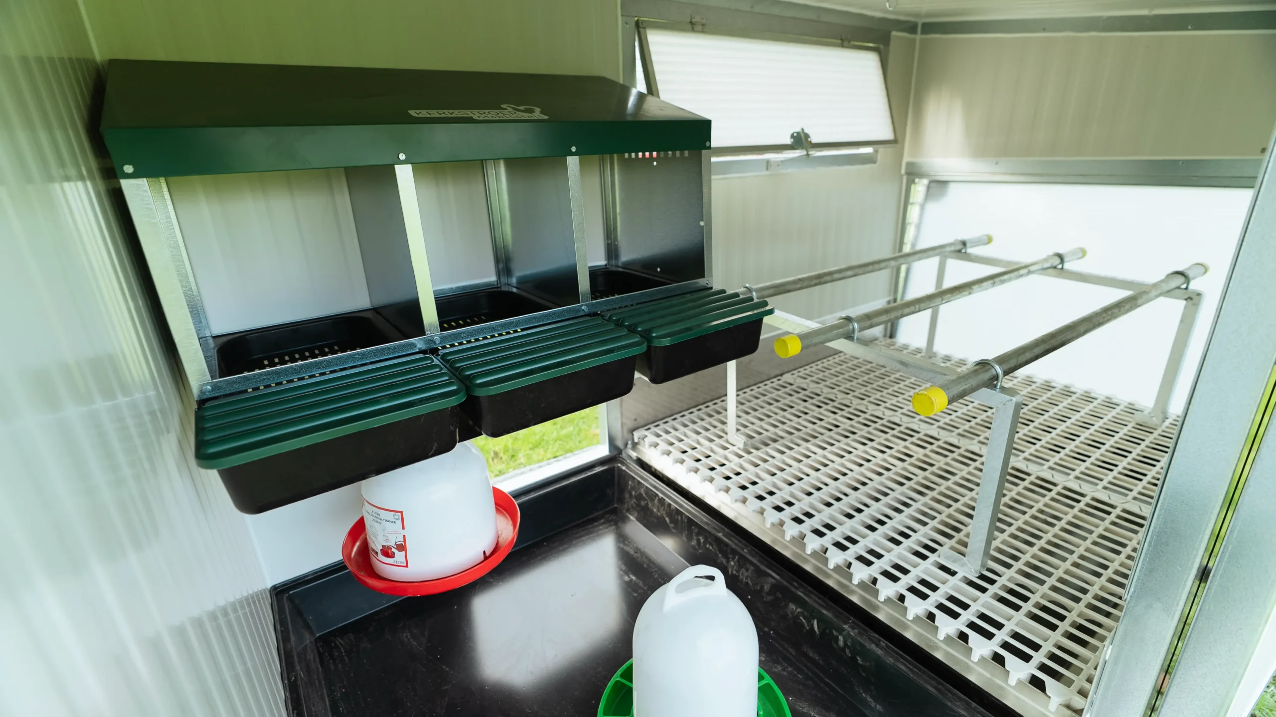 Unser Mobilstall 16 ist für den Hobbybereich geeignet. Hier haben bis zu 15 Hühner Platz und er verfügt über Legenester, einen Futterautomaten, eine Stülptränke und Sitzstangen.