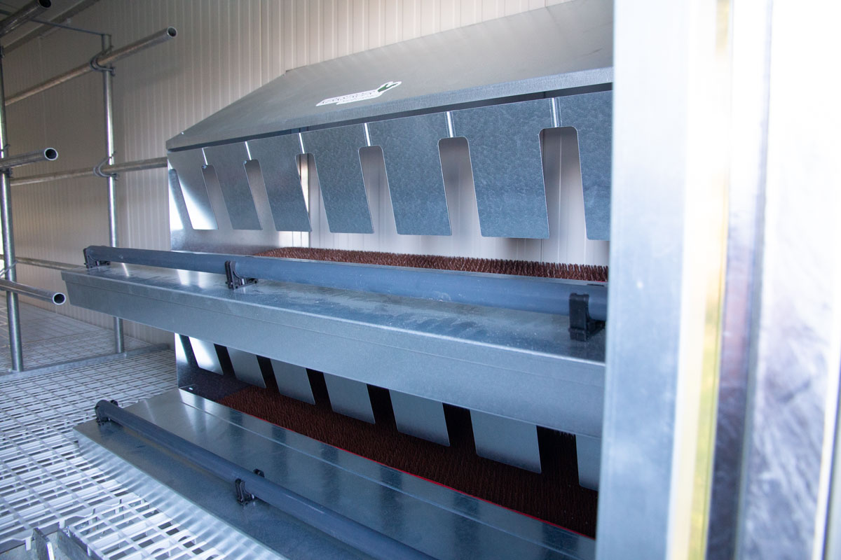 - Hygieneschleuse: Im Vorraum kann das Schuhwerk oder die gesamte Kleidung zum Schutz vor Einschleppung von Seuchen gewechselt werden.