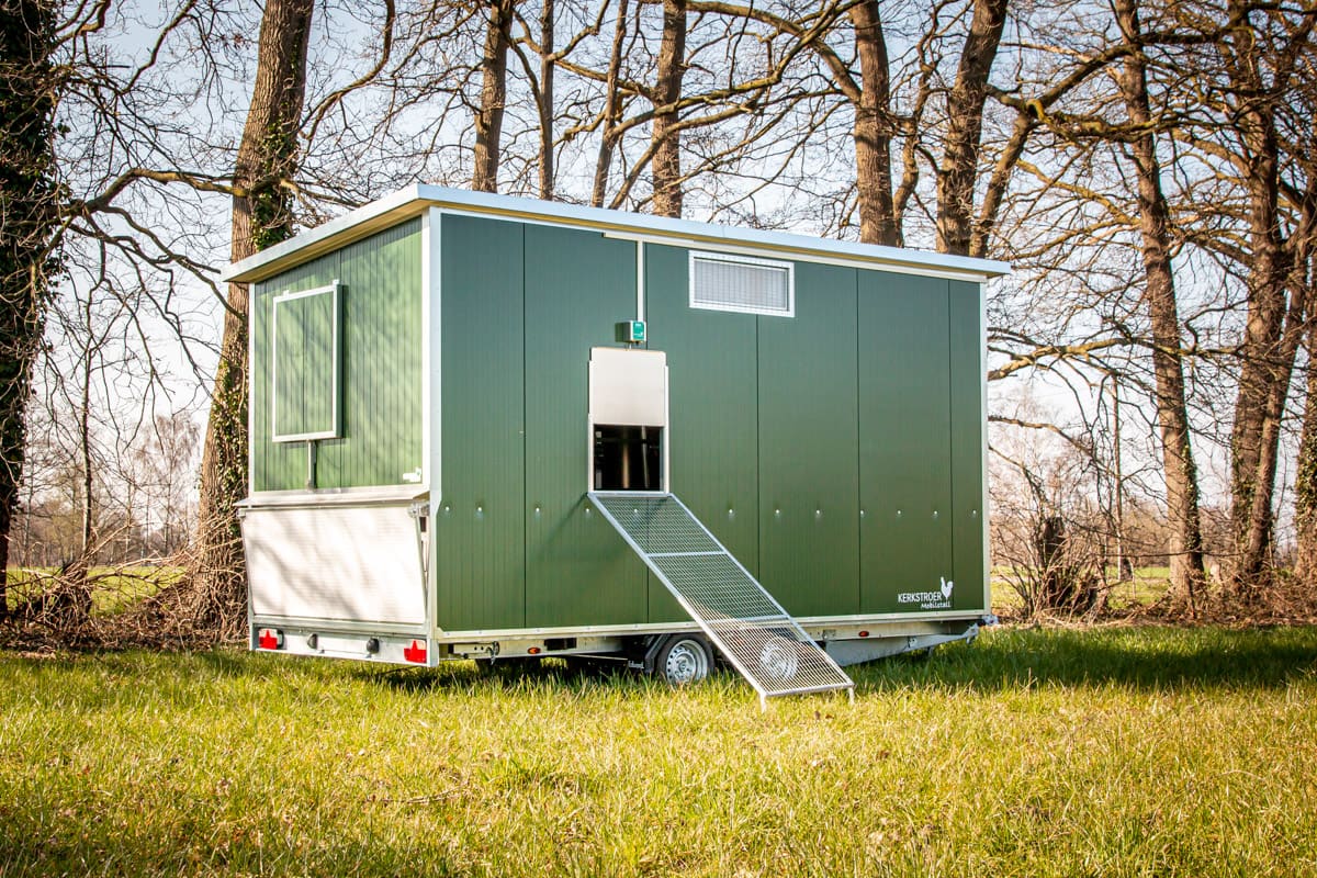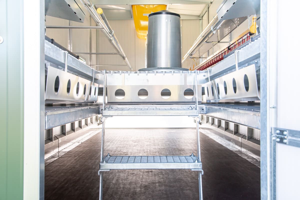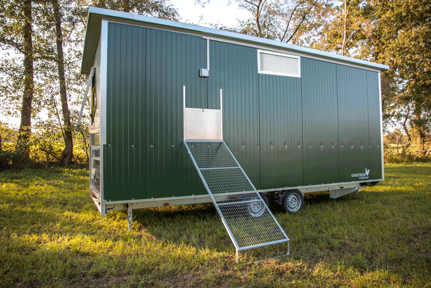 Unser Mobilstall-Modell bietet alles, was ein Hühnerstall für eine erfolgreiche Produktion benötigt. Im Stall haben bis zu 173 Hühner Platz und in der Biohaltung bis zu 161 Hühner. Ideal für die Direktvermarktung.
