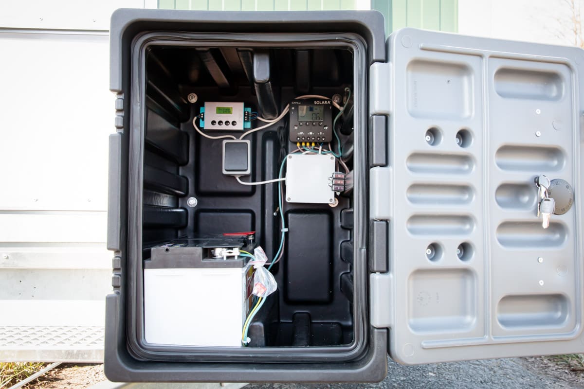 Über das Display im Batteriekasten haben Sie jederzeit einen Überblick über die Stromproduktion und den Akkustand. Durch einen zusätzlichen Spannungswandler (optional) haben Sie die Möglichkeit zur kurzfristigen Zuschaltung von 230 V.