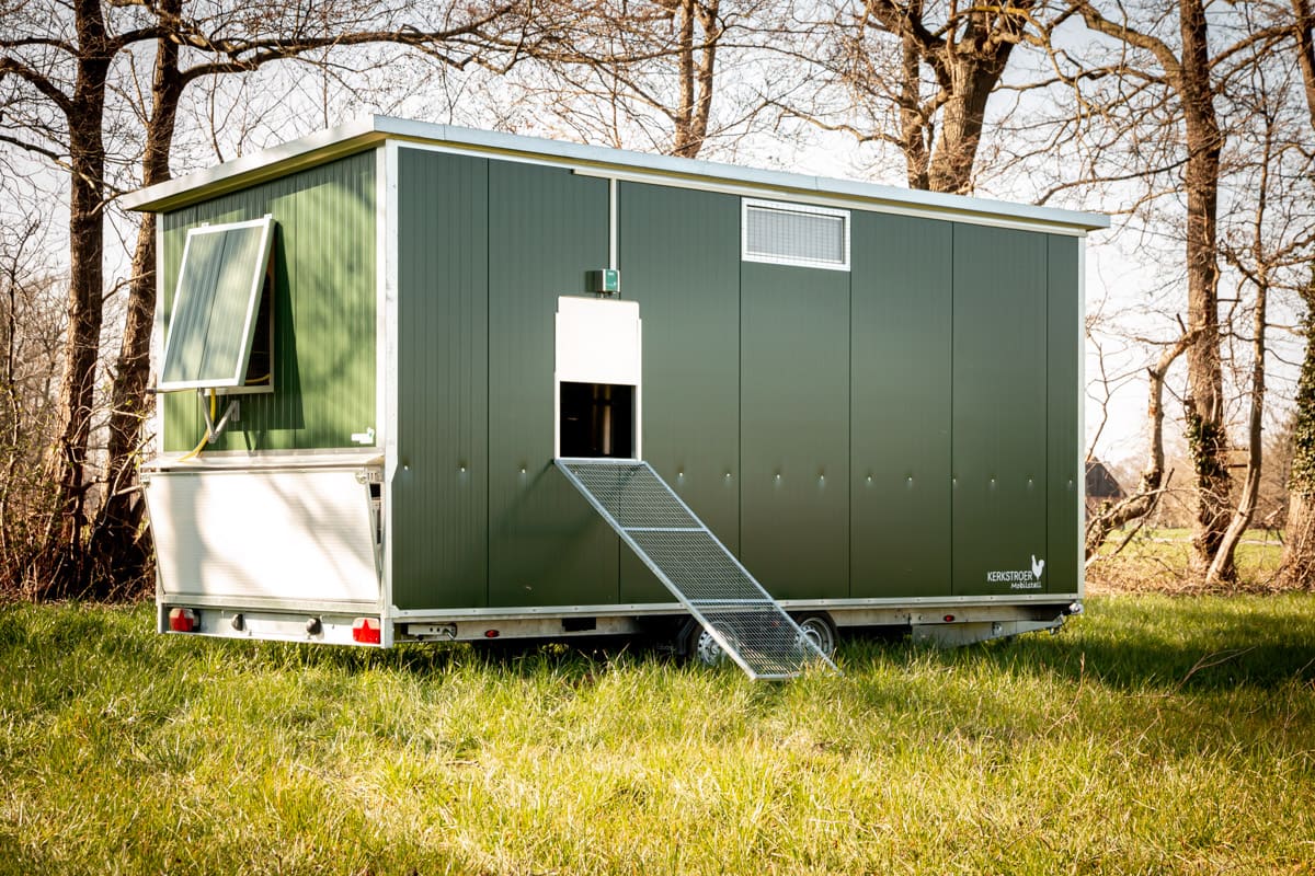 Unser zweitgrößter Mobilstall bietet alles, was ein Hühnerstall für eine erfolgreiche Produktion benötigt. Im Stall haben bis zu 218 Hühner Platz und in der Biohaltung bis zu 190 Hühner. Ideal für die Direktvermarktung.