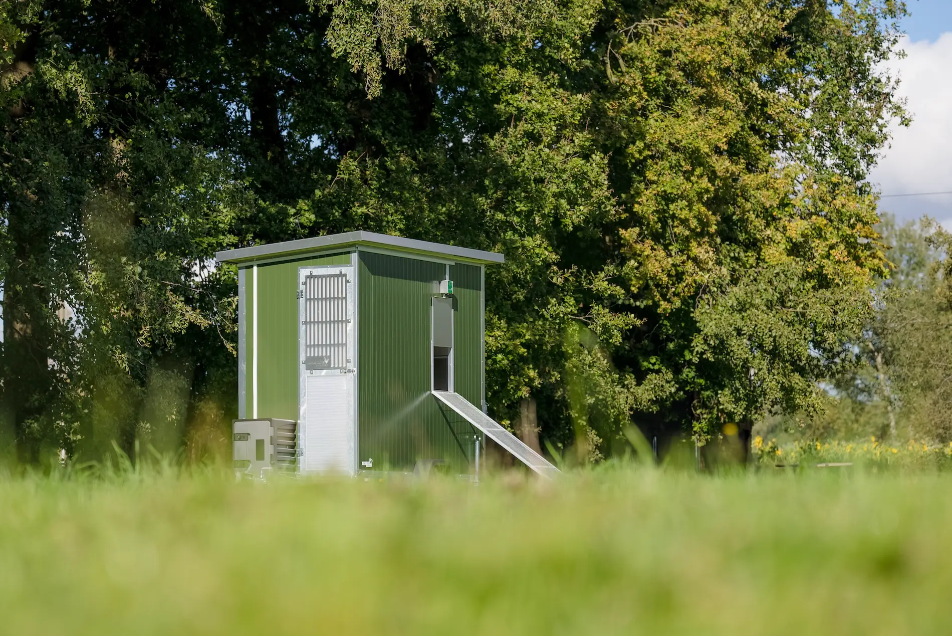 Unser kleinster Mobilstall bietet alles, was ein Hühnerstall für eine erfolgreiche Produktion benötigt. Im Stall haben bis zu 50 Hühner Platz und in der Biohaltung bis zu 48 Hühner. Ideal für Ihren Einstieg in die Direktvermarktung oder für Selbstversorger.