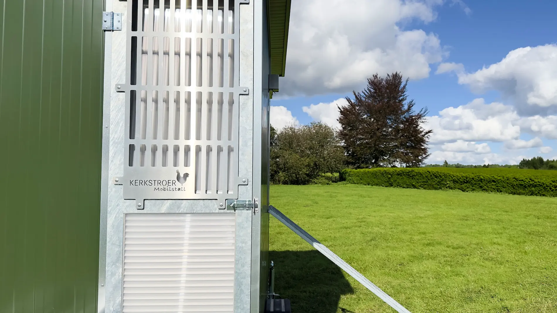 Der Stall hat genug freie Fläche für Ihre Werbung, dies hat eine enorme Wirkung. Gut platziert können sich Ihre Kunden direkt vom Wohlergehen Ihrer Hühner auf der grünen Weide selbst überzeugen. Da nimmt man als Kunde gerne einen etwas höheren Preis für die Eier in Kauf.